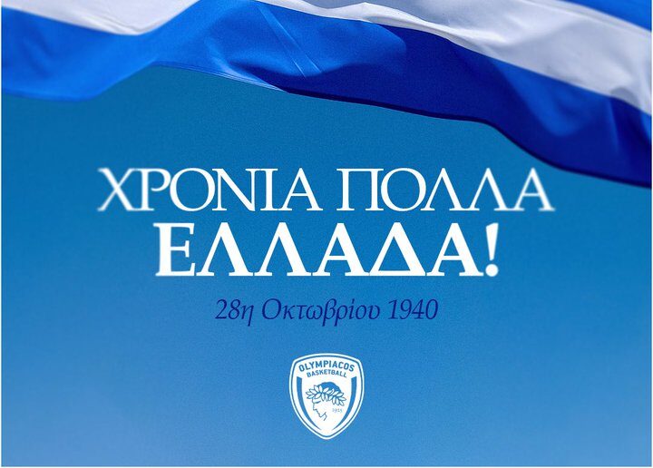 Σε ελληνικό ιστορικό κλίμα και η επετειακή ανάρτηση της ΚΑΕ Ολυμπιακός με μία πελώρια γαλανόλευκη σημαία και μήνυμα «Ζήτω η Ελλάδα» και «Χρόνια Πολλά».