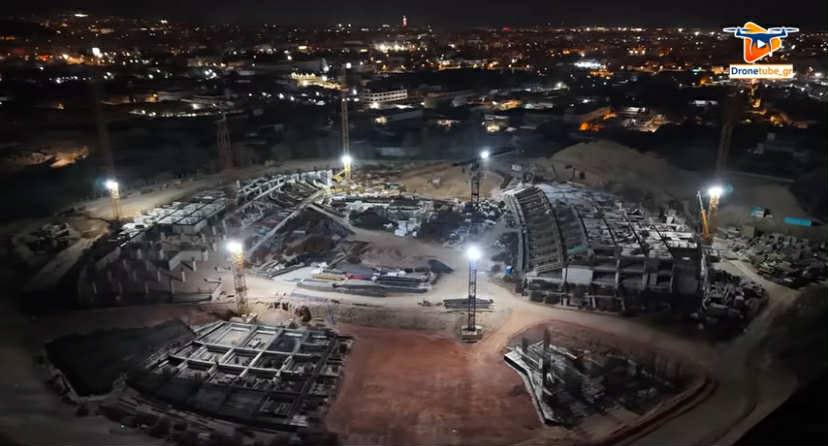 Φώτα, μηχανήματα και κατασκευές δίνουν μια πρώτη εικόνα του έργου που θα αποτελέσει το νέο «σπίτι» του Παναθηναϊκού από τις αρχές του 2027.