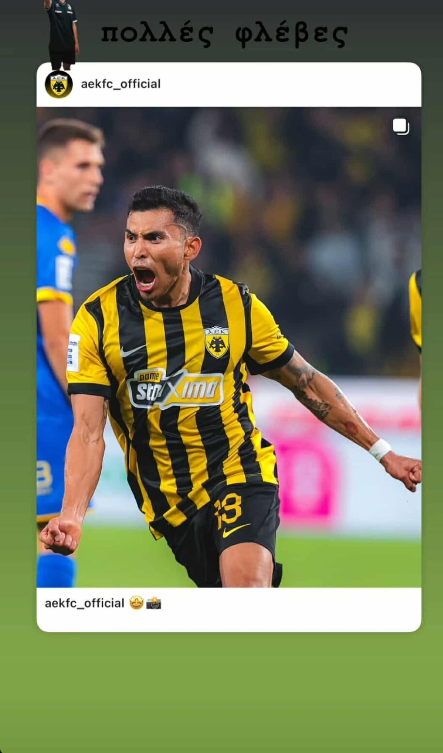 Συγκεκριμένα, ο αρχηγός της Ένωσης ανέβασε ένα instagram story με τη λήξη της αναμέτρησης, όπου φαίνεται να πανηγυρίζει ο Πινέδα και δίπλα του έχει τοποθετήσει έναν διαιτητή που μοιράζει κίτρινες κάρτες, με τη χρήση σχετικού gif.
