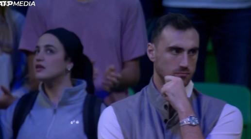 Τη στιγμή παρακολούθησε από τις εξέδρες και ο σέντερ του Ολυμπιακού, Νίκολα Μιλουτίνοφ, που είδε από κοντά τον συμπατριώτη του στον αγώνα που προηγήθηκε.