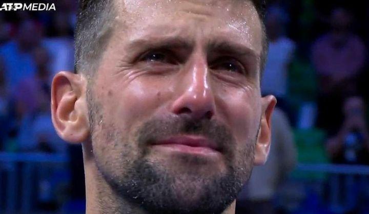 Παρακολουθώντας στην οθόνη ένα βίντεο – αφιέρωμα στη μνήμη του Κροάτη προπονητή και μέντορά του, Νίκι Πίλιτς, που έφυγε από τη ζωή τον Σεπέμβριο, ο Τζόκοβιτς ξέσπασε σε λυγμούς.