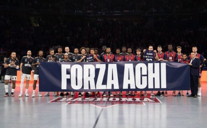 «Forza Achi» έγραφε το μήνυμα στο πανό που σήκωσαν οι παίκτες των δύο ομάδων, τις φανέλες των οποίων τίμησε ο Ιταλός αθλητής.