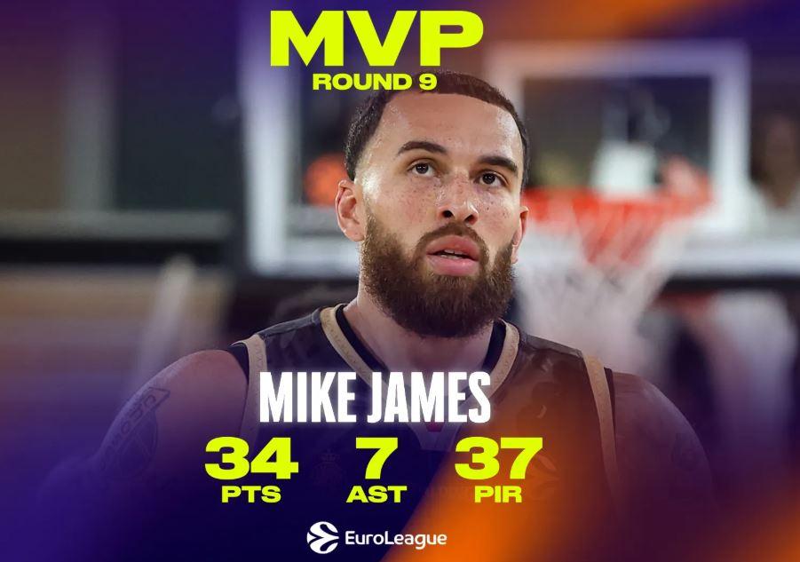 Ο Μάικ Τζέιμς έκανε ξανά τη διαφορά στη δύσκολη νίκη της Μονακό στην παράταση απέναντι στη Μακάμπι Τελ Αβίβ, με τον Αμερικανό να κάνει μαγικά πράγματα στο παρκέ για να αναδειχθεί τελικά MVP της 9ης αγωνιστικής της EuroLeague.
