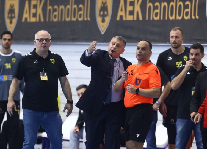 Η ΑΕΚ επικράτησε με 28-27 του Ολυμπιακού στο ντέρμπι της 8ης αγωνιστικής της Handball Premier στο «Γ. Κασιμάτης», στην έδρα όπου οι κανονισμοί καταστρατηγήθηκαν για ακόμα μια φορά.