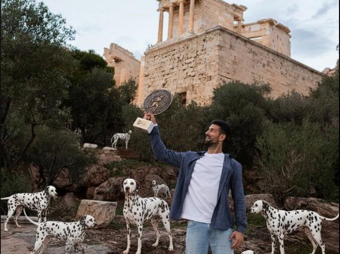 Αυτή τη φορά δεν ήταν μόνος. Είχε παρέα και μάλιστα… μεγάλη. Μαζί του πήρε το τρόπαιο του τουρνουά, καθώς και… κάποια από 101 σκυλιά της Δαλματίας! Κι αν το τρόπαιο ήταν πέρα ως πέρα αληθινό, τα πιτσιλωτά σκυλιά ανέβηκαν ως τον βράχο της Ακρόπολης με τη βοήθεια του AI, προς τιμή της κατάκτησης του 101ου τίτλου στην καριέρα του τεράστιου Σέρβου τενίστα.