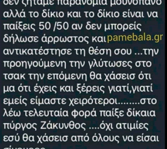Ο διαιτητής από τη Μεσσηνία έλαβε στο κινητό του απειλητικό μήνυμα από πακιστανικό νούμερο πριν από τον αγώνα, στο οποίο τον προειδοποιούσαν ότι «αν δεν παίξεις καλό και σωστό αγώνα σπίτι δε θα ξαναγυρίσεις. Την προηγούμενη φορά τη γλίτωσες στο τσακ, την επόμενη θα χάσεις ό,τι έχεις».