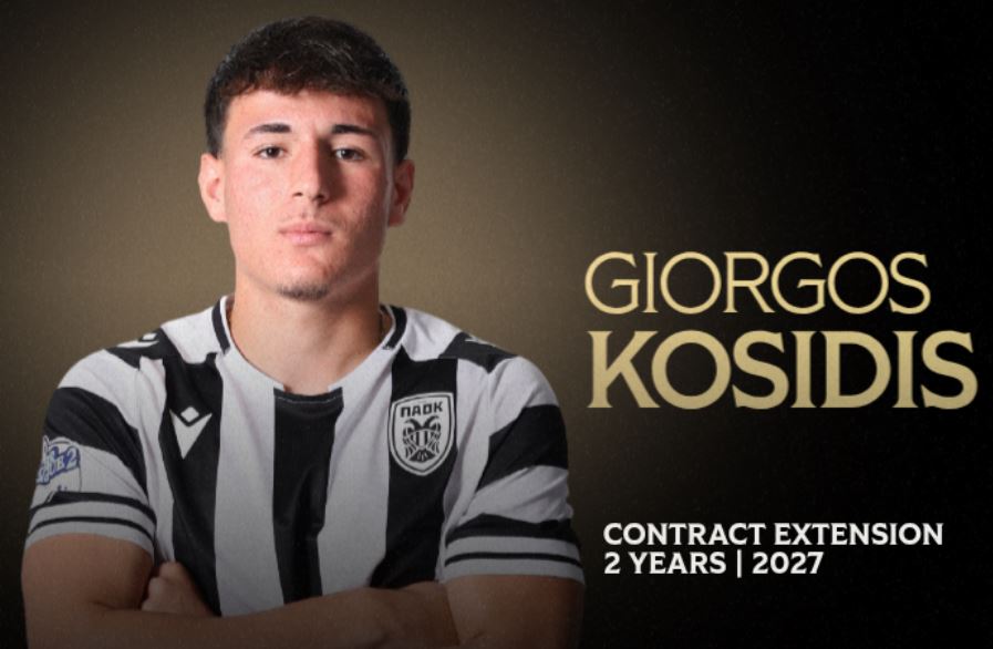 «Η ΠΑΕ ΠΑΟΚ ανακοινώνει την ανανέωση συμβολαίου του Γιώργου Κοσίδη μέχρι τον Ιούνιο του 2027.