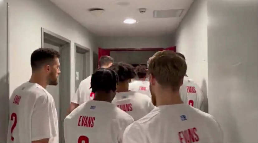 Οι παίκτες του Ολυμπιακού δεν ξεχνούν τον Αμερικανό γκαρντ και βρίσκονται πάντα στο πλευρό του. Τον… έχουν μαζί τους και στο Μιλάνο για την αναμέτρηση με την Αρμάνι, καθώς τού αφιέρωσαν ένα μπλουζάκι γεμάτο ελπίδα για να του εκφράσουν τη στήριξή τους και ότι «πάντα υπάρχει ένας τρόπος αρκεί να μην χάνει την ελπίδα σου. Μείνει δυνατός Κίναν», όπως γράφτηκε στο συγκεκριμένο μπλουζάκι για χάρη του Έβανς, με το όνομά του στην πλάτη όλων των συμπαικτών του.