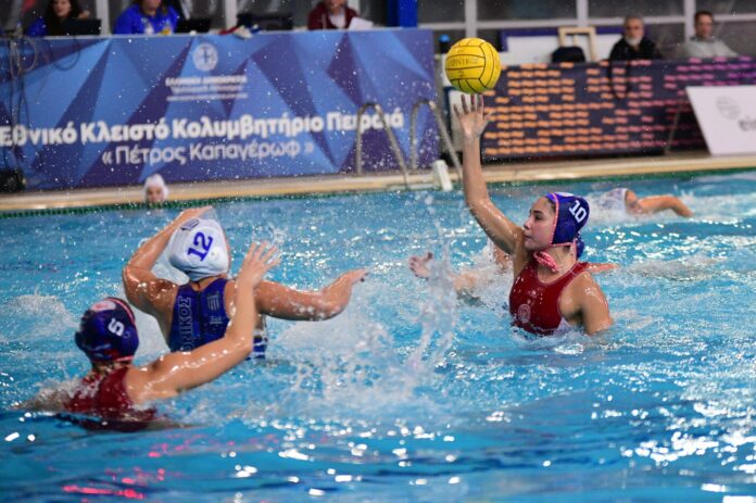 Ο Ολυμπιακός δυσκολεύτηκε αρκετά κόντρα στον ανταγωνιστικό Εθνικό αλλά με ένα επιθετικό ξέσπασμα στο 4ο οκτάλεπτο κατάφερε να ξεφύγει με +5 τέρματα διατηρώντας αυτή την απόσταση ασφαλείας μέχρι το φινάλε για τη νίκη με 13-8 και στο 8/8 στην Water Polo League Γυναικών.