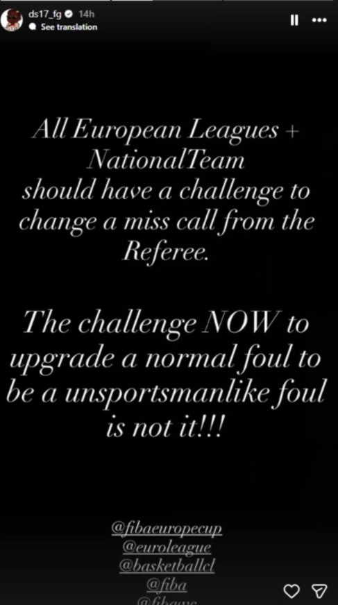 «Έδωσαν φάουλ σε αυτή τη φάση. Είναι προφανές ότι αυτός (σσ. ο Μπράουν) κλωτσάει με το πόδι του προς τα εμπρός. FIBA Europe Cup μπορείς και καλύτερα», έγραψε χαρακτηριστικά ενώ στη συνέχεια προχώρησε και σε νέα τοποθέτηση.