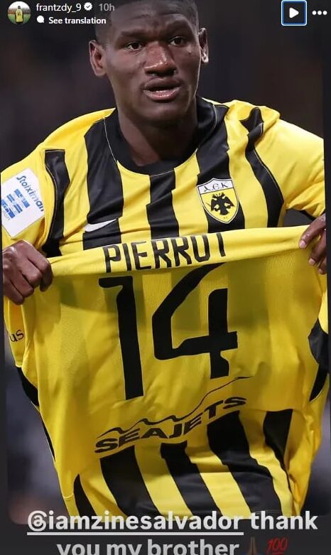 Ο επιθετικός από την Αϊτή απουσίασε για αυτό τον λόγο από την αποστολή του αγώνα με τους Θεσσαλονικείς αλλά φρόντισε να ευχαριστήσει δημόσια μέσω instagram story τον συμπαίκτη του για το γεγονός πως τού αφιέρωσε το τέρμα του υψώνοντας τη φανέλα του στην κερκίδα.