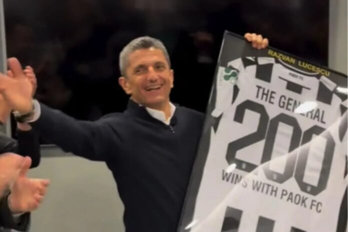 Ο Ραζβάν Λουτσέσκου γιόρτασε κόντρα στην Κηφισιά τις 200 νίκες στον πάγκο του ΠΑΟΚ, με τον Ρουμάνο τεχνικό να αποθεώνεται από τους παίκτες του στα αποδυτήρια της Τούμπας και να δίνει σύνθημα για νταμπλ και καλή πορεία στο Europa League σε μία ιδιαίτερη χρονιά, όπως τόνισε στη σύντομη ομιλία του.