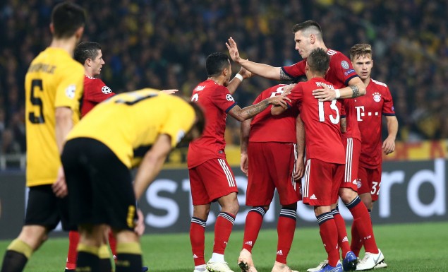 Αρχικά στο 61’ ο Χάβι Μαρτίνεζ εκμεταλλεύτηκε στην ασθενή απόκρουση του Λαμπρόπουλου σε σουτ του Ρόμπεν και με πλασέ άνοιξε το σκορ. Δύο λεπτά μετά, ο Λεβαντόφσκι εκμεταλλεύτηκε τρομερή ομαδική προσπάθεια για να γράψει το 0-2.