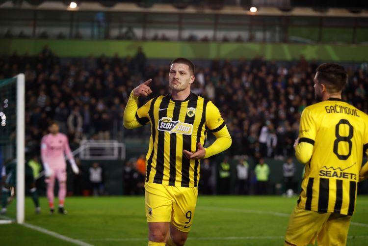 Ωστόσο, ο Παναθηναϊκός έκανε παιδαριώδες λάθος δύο λεπτά αργότερα και εν μέσω καθυστερήσεων με τον Πάλμερ-Μπράουν να μπερδεύεται με τον Ντραγκόφσκι και τον Κοϊτά να χώνεται ανάμεσά τους για την μπάλα και να κερδίζει το πέναλτι που εκτέλεσε ο Γιόβιτς για να υπογράψει τη νίκη της ΑΕΚ.