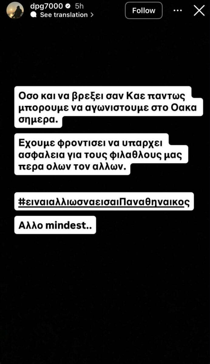 «Όσο και να βρέξει σαν ΚΑΕ πάντως μπορούμε να αγωνιστούμε στο ΟΑΚΑ σήμερα. Έχουμε φροντίσει να υπάρχει ασφάλεια για τους φιλάθλους μας πέρα όλων των άλλων. Είναι αλλιώς να είσαι Παναθηναϊκός. Άλλο mindset», ανέφερε στη νέα του ανάρτηση ο ιδιοκτήτης της ΚΑΕ Παναθηναϊκός.