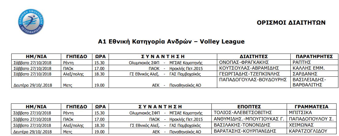 Αναλυτικά οι διαιτητές των αναμετρήσεων: