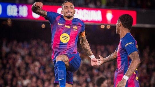 Ο Ραφίνια «χτύπησε» στο 70′ και στο 86′ κι ενώ στο πρώτος μέρος είχε ακυρωθεί το γκολ του Φεράν Τόρες για τους γηπεδούχους, που δυσκολεύτηκαν αρκετά απέναντι σε μία ομάδα που θα δώσει μάχη για τη σωτηρία της.