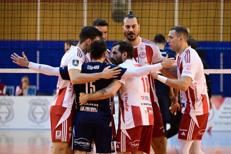 Οι Ερυθρόλευκοι κατέκτησαν αρκετά εύκολα και το πρώτο (17-25) και το τρίτο σετ (19-25) ενώ ο Φλοίσβος είχε ισοφαρίσει προσωρινά κατακτώντας το δεύτερο: Οι Πειραιώτες είχαν βρεθεί στο +3 (12-15) αλλά οι γηπεδούχοι προσπέρασαν και έφτασαν σε σετ μπολ με τον Έγκλεσκαλνς (24-23). Οι φιλοξενούμενοι το έσβησαν, αλλά ο Κόβαρ δημιούργησε το δεύτερο σετ μπολ και το τελείωσε ο ίδιος με κόντρα μπάλα (26-24).
