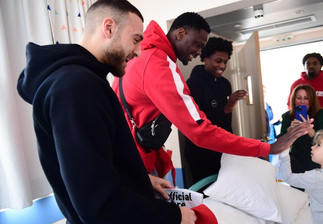 Συγκεκριμένα οι Φρανκ Νιλικίνα, Σακίλ ΜακΚίσικ, Μουστάφα Φαλ και Όμηρος Νετζήπογλου, επισκέφθηκαν παιδιατρική πτέρυγα του Ομίλου Ιατρικού Κέντρου Αθηνών στο Μαρούσι, γεμίζοντας με χαμόγελα και δώρα τα παιδιά που νοσηλεύονται εκεί.