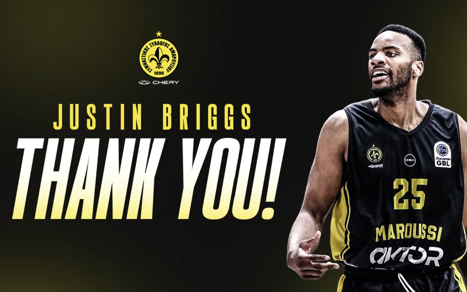 «H KAE ΜΑΡΟΥΣΙ Chery ανακοινώνει τη λύση της συνεργασίας της με τον αθλητή Τζάστιν Μπριγκς. Τον ευχαριστεί για την προσφορά του και του εύχεται “καλή συνέχεια” στην ζωή και την καριέρα του», αναφέρει η ανακοίνωση.