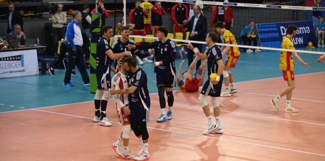 Η ευρωπαϊκή πορεία του Ολυμπιακού στο CEV Cup συνεχίζεται. Οι Ερυθρόλευκοι κατέκτησαν τα δύο σετ που χρειάζονταν στην Ολλανδία απέναντι στην Άπελντορν και ετοιμάζονται για τους «16» όπου θα αντιμετωπίσουν σε διπλά παιχνίδια την Καρλοβάρσκο, η οποία απέκλεισε τον Μίλωνα.