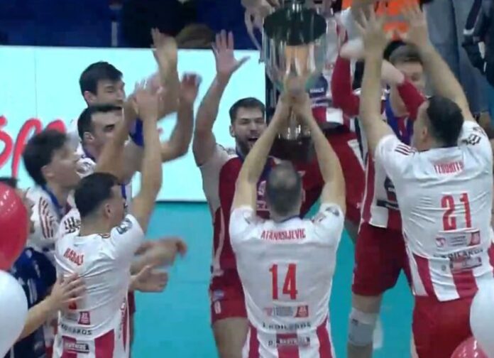 Ο Ολυμπιακός κατέκτησε δεύτερο συνεχόμενο Super Cup μετά την ανατροπή απέναντι στον Παναθηναϊκό στο Μαρκόπουλο και οι πανηγυρισμοί στο φινάλε του πέμπτου σετ ήταν ξέφρενοι.