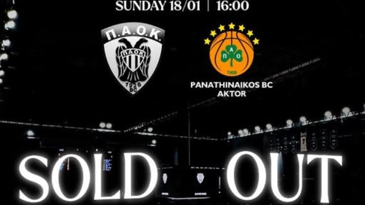 Το sold out ανακοίνωσε επίσημα σήμερα (14/1) η ΚΑΕ ΠΑΟΚ.