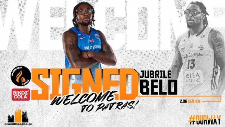 Η ΚΑΕ Προμηθέας Πάτρας Βίκος Cola βρίσκεται στην ευχάριστη θέση να ανακοινώσει την έναρξη της συνεργασίας της με τον αθλητή Jubrile Belo, ο οποίος θα ενισχύσει τη γραμμή των ψηλών στην ομάδα μας μέχρι το φινάλε της σεζόν 2025-26.