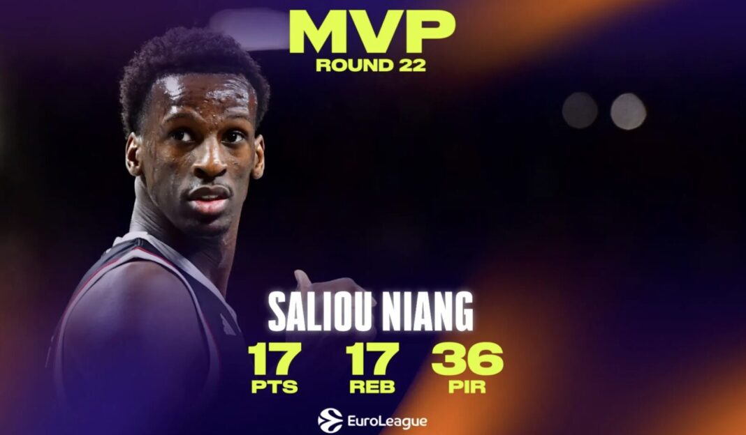 MVP για πρώτη φορά στην καριέρα του στην 22η αγωνιστική της EuroLeague αναδείχθηκε ο Σαλιού Νιάνγκ. Ο 21χρονος Ιταλός φόργουορντ έκανε θραύση στη μεγάλη νίκη της Βίρτους Μπολόνια στο Ντουμπάι με 72-80 και οι 36 βαθμοί αξιολόγησης του έδωσαν το βραβείο του κορυφαίου της αγωνιστικής.