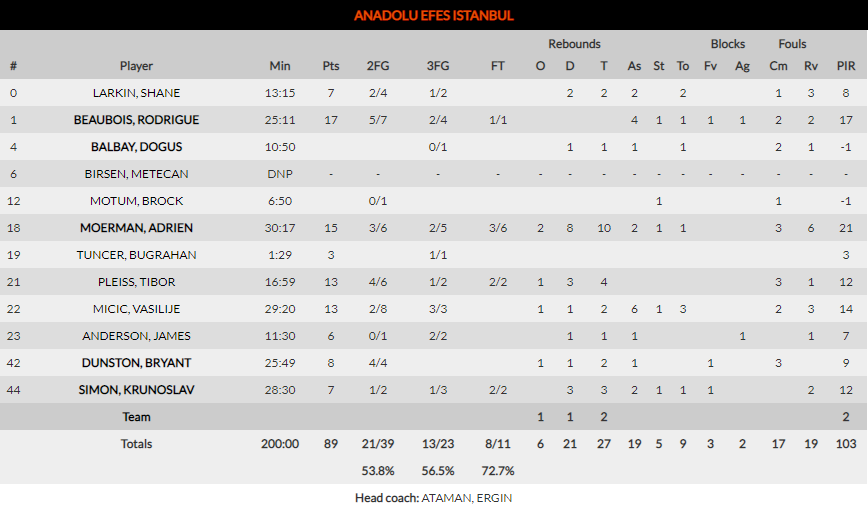 Με 5′ να απομένουν στο ρολόι, η ομάδα του Αταμάν νικούσε για 5 πόντους (73-68) κι έδειχνε ότι δεν μπορεί να το χάσει. Τα τρίποντα του Μπομπουά, ο δυναμισμός του πάντοτε μαχητικού Μόερμαν και η αυταπάρνηση του φιλότιμου Μπαλμπάι κλείδωσαν τη νίκη για την Εφές. Για τη χαμένους, κορυφαίος ήταν ο Γιαν Βέσελι, ο οποίος φλέρταρε με το triple double (24π., 8ρ., 7α.).
