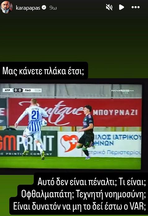 Την απορία του για το πέναλτι του Μπόκου στον Ούρονεν που δε δόθηκε υπέρ του Ατρομήτου στην αναμέτρηση του απέναντι στον Παναθηναϊκό σχολίασε μετά το τέλος του αγώνα στο Περιστέρι ο Κώστας Καραπαπάς.