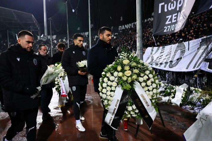 Οι ποδοσφαιριστές των δύο ομάδων και οι διαιτητές άφησαν στεφάνια μπροστά στη Θύρα 4, ενώ στην Τούμπα υπάρχουν πολλά πανό στη μνήμη των επτά φίλων του ΠΑΟΚ που έχασαν τη ζωή τους. Όλοι τους φορούσαν μπλούζες που έγραφαν «Αθάνατο, 27/1/2026».