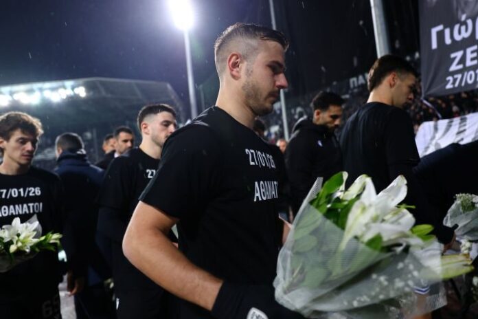 Οι ποδοσφαιριστές των δύο ομάδων και οι διαιτητές άφησαν στεφάνια μπροστά στη Θύρα 4, ενώ στην Τούμπα υπάρχουν πολλά πανό στη μνήμη των επτά φίλων του ΠΑΟΚ που έχασαν τη ζωή τους. Όλοι τους φορούσαν μπλούζες που έγραφαν «Αθάνατο, 27/1/2026».