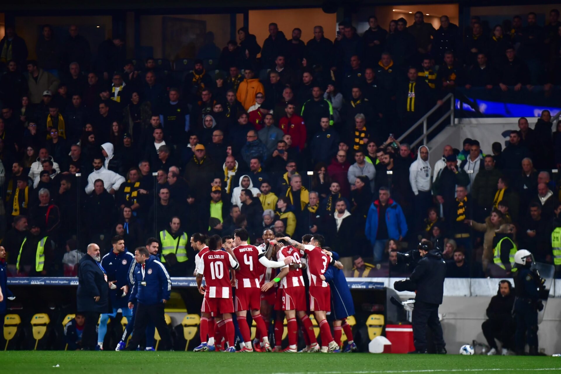 Από την πλευρά της, η ΠΑΕ Ολυμπιακός, είναι αποφασισμένη να περάσει στην αντεπίθεση σχετικά με τα όσα έγιναν το βράδυ της Κυριακής στην έδρα της ΑΕΚ. Συγκεκριμένα, οι Ερυθρόλευκοι ετοιμάζουν καταγγελίες και μηνυτήριες αναφορές σε βάρος της Ένωσης τόσο για τα αντικείμενα που έπεσαν στον αγωνιστικό χώρο όσο και για τις ύβρεις και τις φτυσιές στη σουίτα που φιλοξενήθηκε η αποστολή της ομάδας σύμφωνα με όσα ισχυρίζονται οι άνθρωποι της ομάδας.