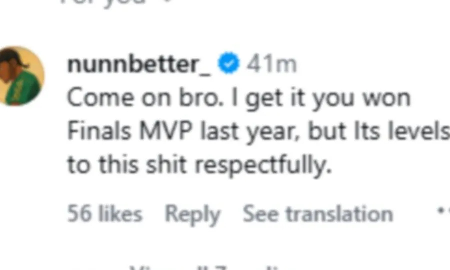 «Έλα αδερφέ. Καταλαβαίνω, κέρδισες τον τίτλο του MVP των περσινών τελικών, αλλά υπάρχουν επίπεδα σε αυτά πράγματα, με όλο τον σεβασμό», έγραψε ο Αμερικανός
