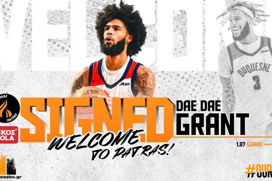 «Η ΚΑΕ Προμηθέας Πάτρας Βίκος Cola βρίσκεται στην ευχάριστη θέση να ανακοινώσει την έναρξη της συνεργασίας της με τον αθλητή Dae Dae Grant, ο οποίος θα ενισχύσει την περιφερειακή γραμμή της ομάδας μας μέχρι το τέλος της σεζόν.