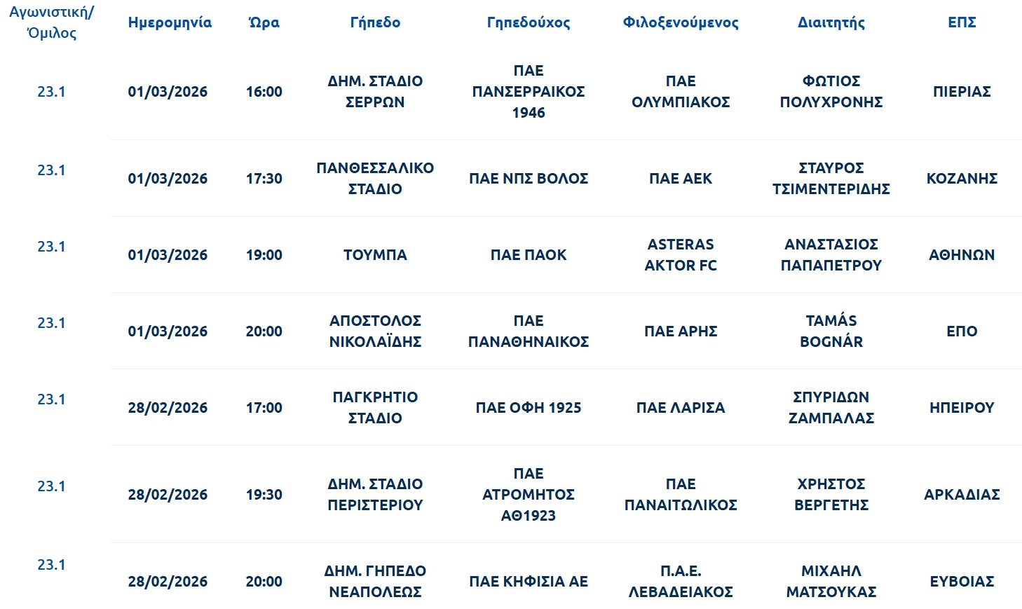 Δείτε τους ορισμούς των διαιτητών στην 23η αγωνιστική της Super League: