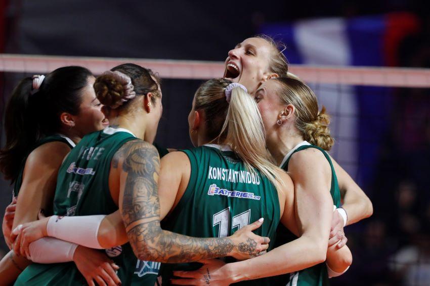 Οι Πράσινες θα αγωνιστούν για τρίτη φορά σε τελικό Challenge Cup και πρώτη μετά το 2009 με στόχο να σηκώσουν το τρόπαιο. Πρώτη σκόρερ με 18 πόντους ήταν η Γουάιτ ενώ μετά τα δύο κερδισμένα σετ, ο Παναθηναϊκός έκανε αλλαγές.