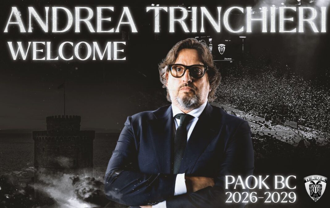 Η ΚΑΕ ΠΑΟΚ ανακοινώνει τη συμφωνία με τον Andrea Trinchieri, ο οποίος θα αναλάβει την τεχνική ηγεσία της ομάδας μας από την αγωνιστική περίοδο 2026–2027 και για τα επόμενα τρία χρόνια.
