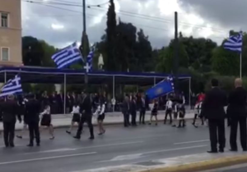 Μικροένταση σημειώθηκε το πρωί στην μαθητική παρέλαση της Αθήνας. Την ώρα που η παρέλαση για την 28η Οκτωβρίου βρισκόταν σε εξέλιξη, γυναίκα που συμμετείχε σ’ αυτήν, κρατώντας μια σημαία με τον ήλιο της Βεργίνας, κοντοστάθηκε μπροστά στους επίσημους.