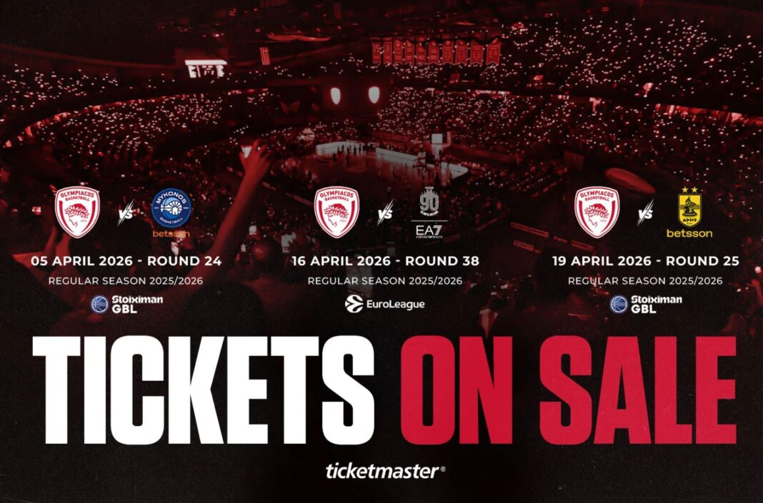 «H ΚΑΕ ΟΛΥΜΠΙΑΚΟΣ ενημερώνει τους φιλάθλους ότι συνεχίζεται η προπώληση των εισιτηρίων για τους εναπομείναντες αγώνες της κανονικής περιόδου της Euroleague και της Stoiximan GBL.